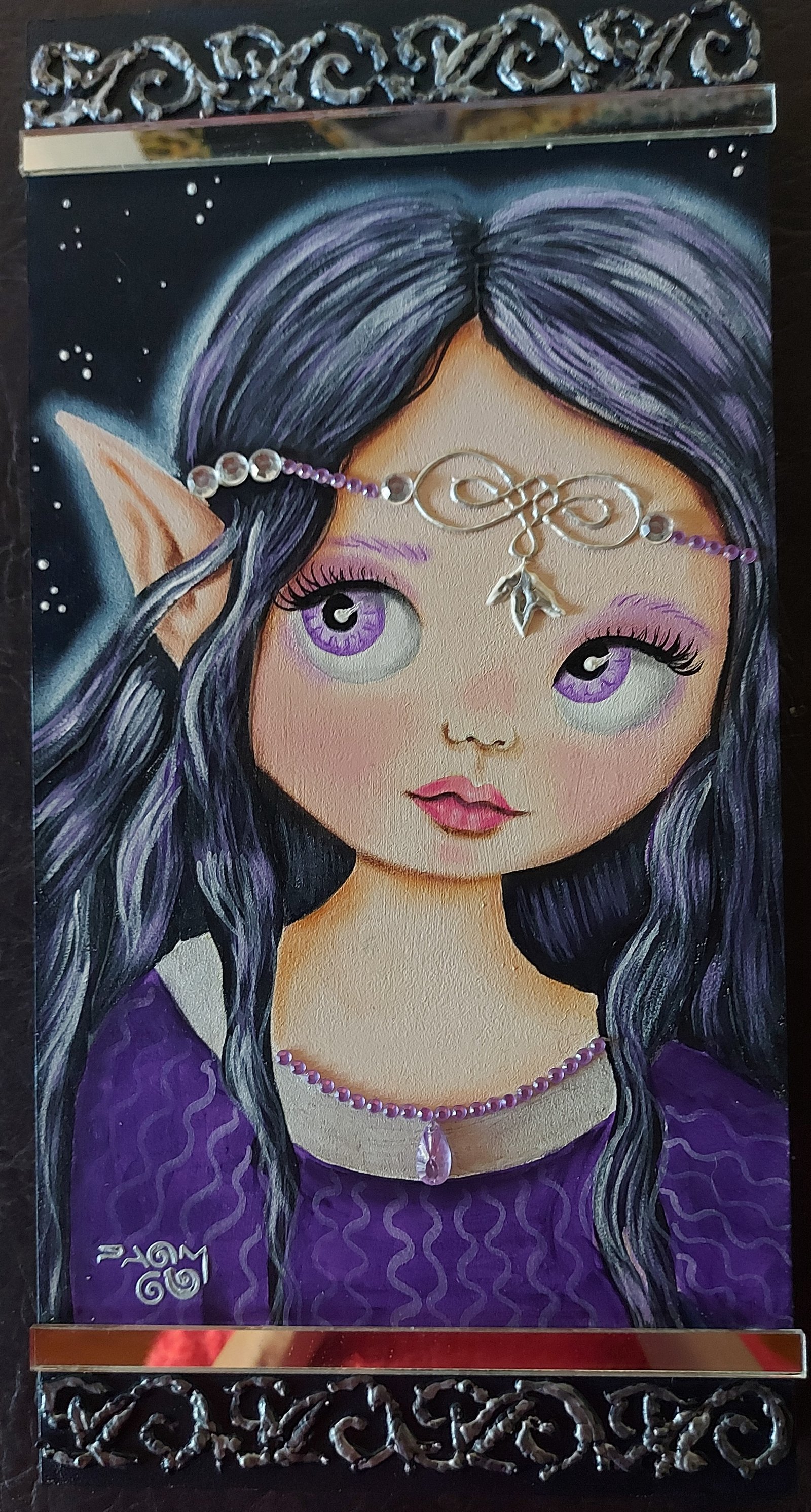 Cuadro original pintado sobre bastidor de fibrofácil de 20 x 40 cm. Pintado con acrílicos, detalles de relieve y apliques.
